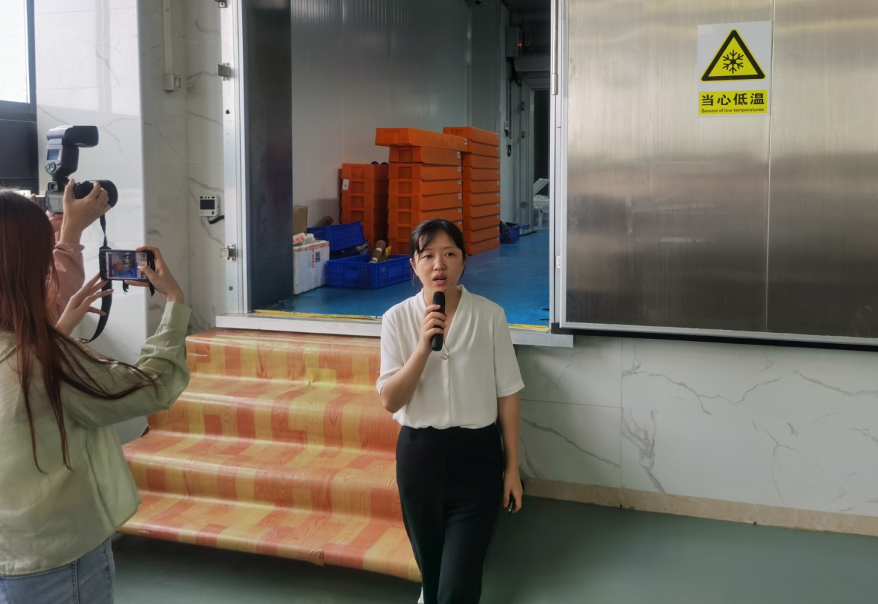 ▲廣州海洋地質(zhì)調(diào)查局大洋鉆探巖心庫高級工程師賴佩欣向記者介紹低溫庫。