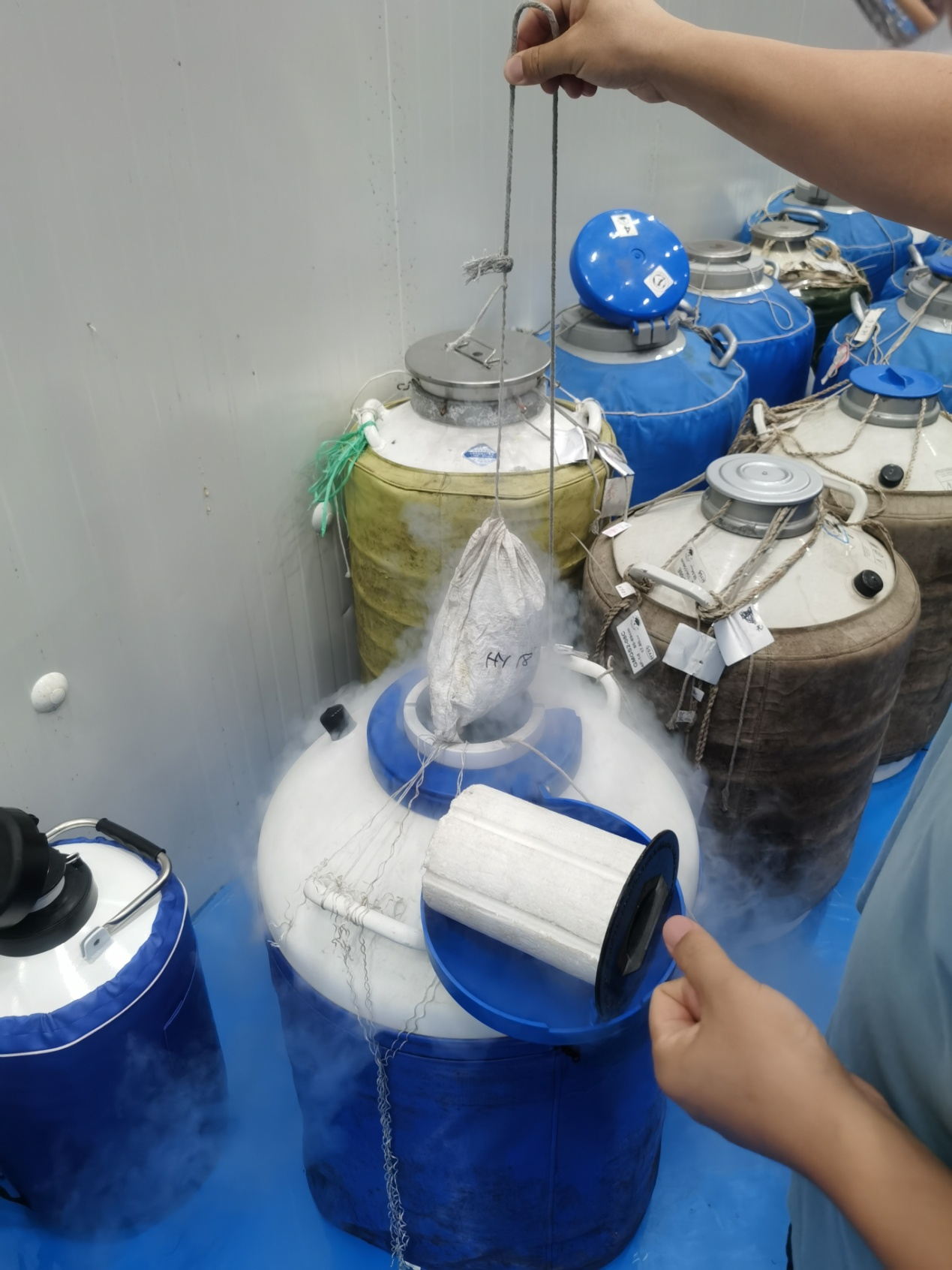 ▲存貯在-196度液氮罐里的海洋可燃冰樣品。