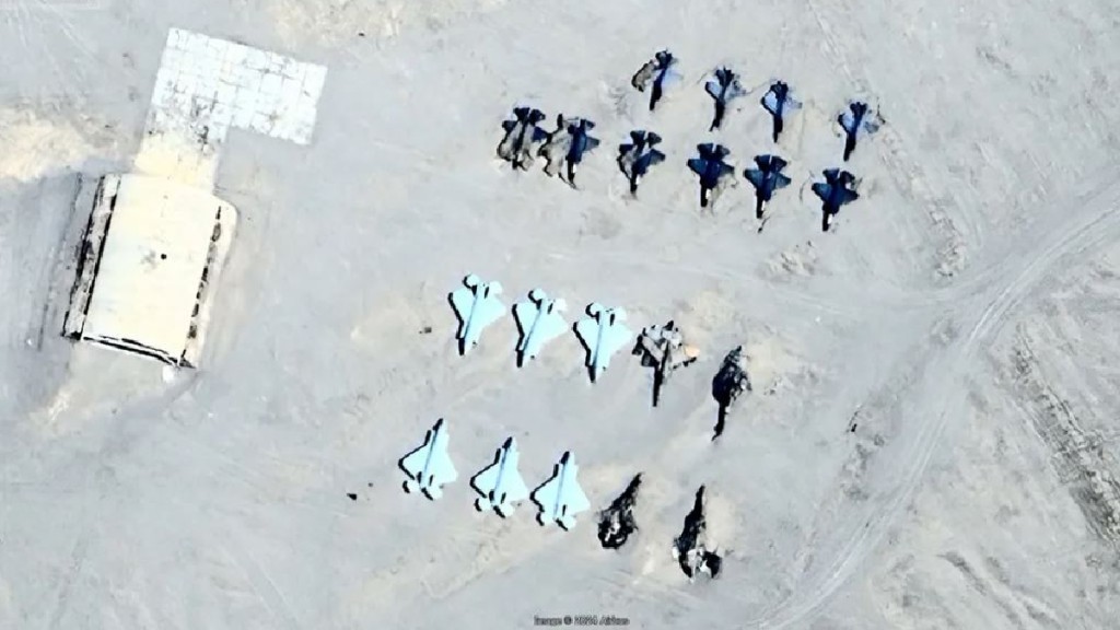 ▲衛(wèi)星圖像顯示,新疆的靶場出現(xiàn)美軍的F-22與F-35隱形戰(zhàn)機的靶機 x@clashreport