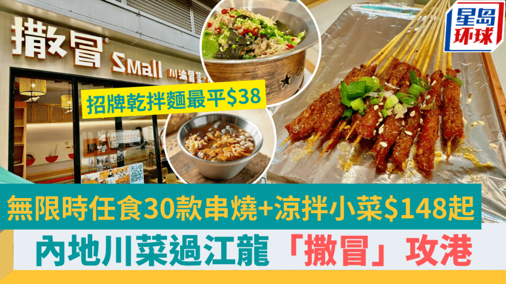 再有內(nèi)地餐飲品牌在香港開分店!內(nèi)地新晉川菜餐廳“撒冒”正式在香港開設(shè)首間分店,選址大角咀奧海城,主打重慶小面和成都冒菜,由重慶主廚監(jiān)修出品,招牌干拌面最平$38就嘆到;晚市則推出無限時串燒放題,每位價錢低至$148,任食超過30款串燒及涼拌小菜,喜歡食川菜的朋友不妨一試!