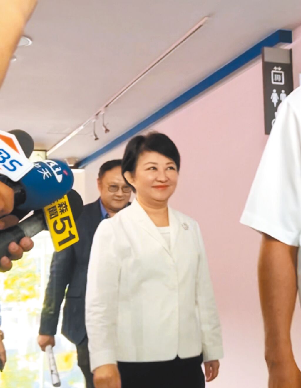 ▲臺中市長盧秀燕將于7月下旬出訪美國,但她2日面對媒體詢問,面帶微笑仍不回應(yīng)。中時