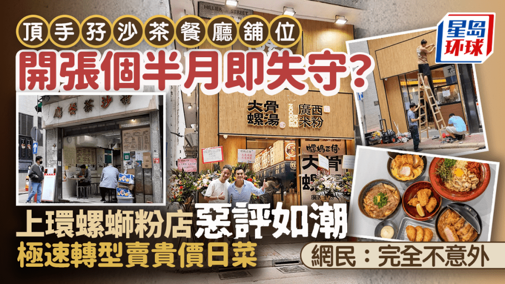 近年港人愛北上消費(fèi),難免會(huì)令香港的餐飲業(yè)生意難做,甚至出現(xiàn)結(jié)業(yè)潮。但如食肆租約未滿,貿(mào)然離場(chǎng)又會(huì)損失慘重,惟有轉(zhuǎn)型求生。近日有網(wǎng)民在facebook群組發(fā)文,指上環(huán)禧利街一間賣螺螄粉的食店“螺媽正傳”,疑因逆市生意難做,加上食客一致負(fù)評(píng),開張個(gè)半月后終于失守,店主極速改名做“不二·工房”,轉(zhuǎn)型賣貴價(jià)日本料理。而該鋪前身就是以賣“三眼仔叉燒飯”馳名的老字號(hào)孖沙茶餐廳,事件引來網(wǎng)民討論。