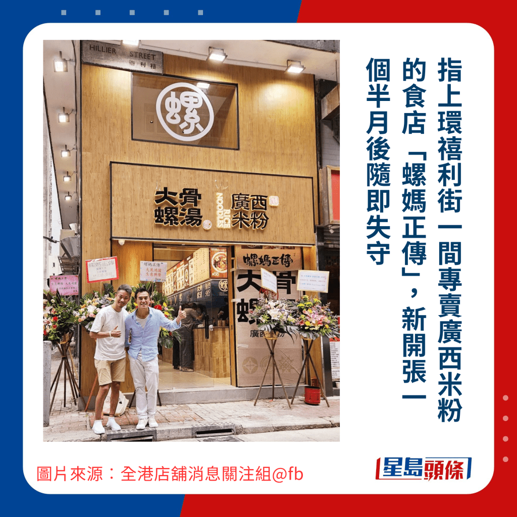 ▲指上環(huán)禧利街一間專賣廣西米粉的食店“螺媽正傳”,新開張一個(gè)半月后隨即失守。