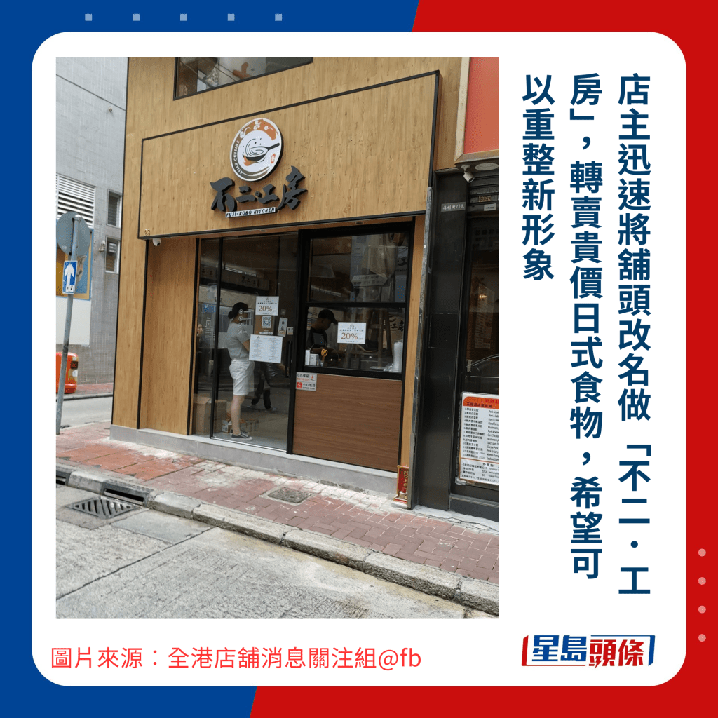 ▲店主迅速將舗頭改名做“不二·工房”,轉(zhuǎn)賣貴價(jià)日式食物,希望可以重整新形象。