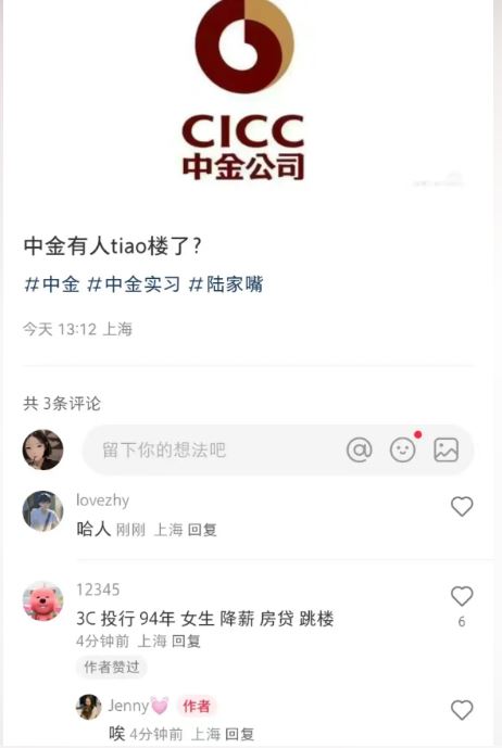 30歲金融女傳降薪跳樓輕生,中金否認(rèn)消息:有員工不幸離世
