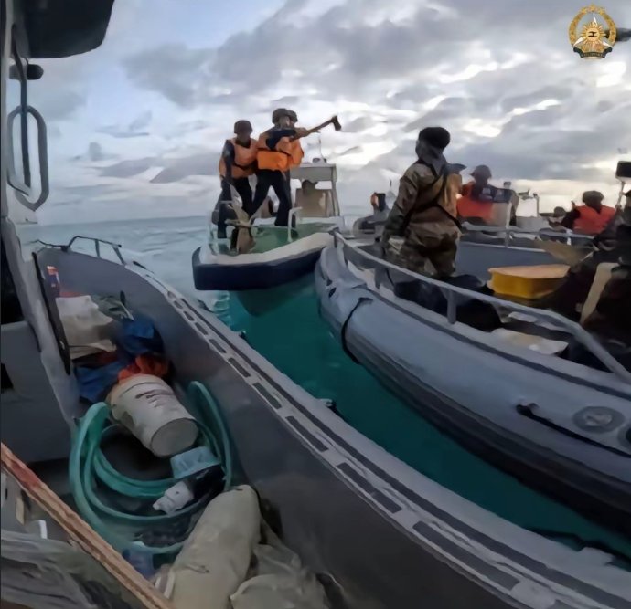 菲方公布視頻,可見有中國海警疑手持消防斧。
