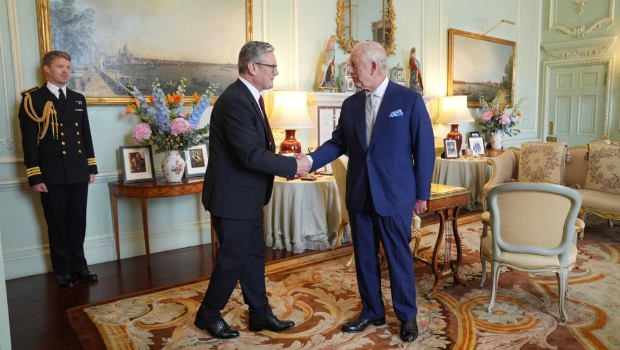 英國(guó)工黨黨魁斯塔默(Keir Starmer)在國(guó)會(huì)大選取得壓倒性勝利后,他今天前往白金漢宮覲見國(guó)王查爾斯三世(King Charles III),正式獲任命成為新任英國(guó)首相。