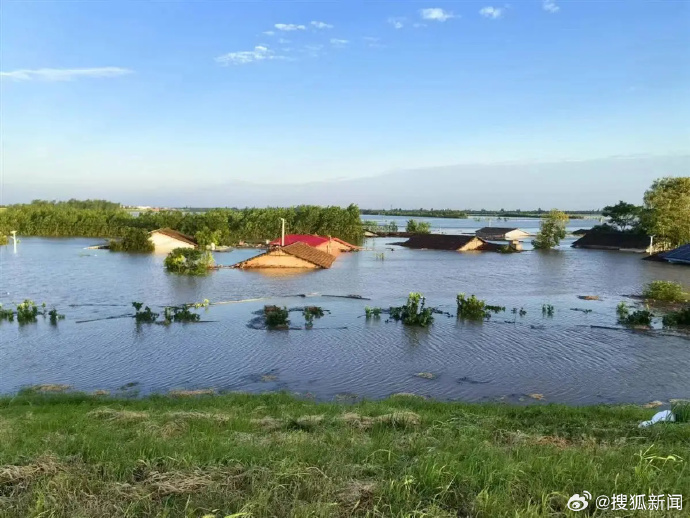 ▲洞庭潰堤,不少房屋被淹。微博@搜狐新聞