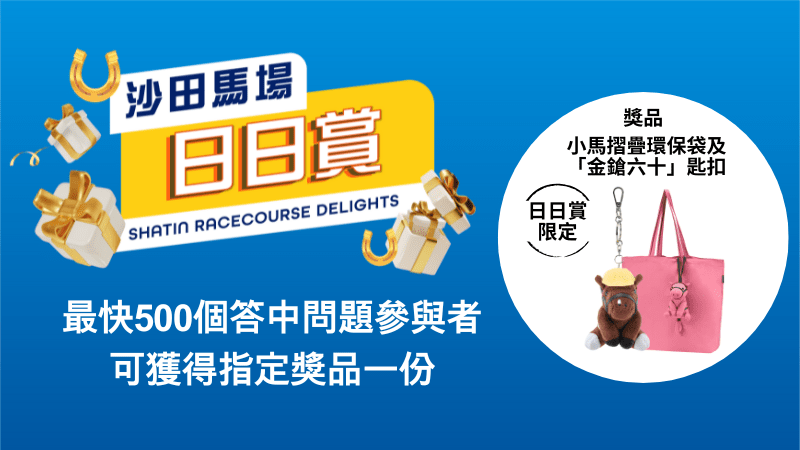 活動(dòng)當(dāng)日,大家更可以參加大抽獎(jiǎng)贏取豐富禮物!只要在當(dāng)日入場(chǎng)并于晚上7時(shí)10分打開(kāi)“馬會(huì)投注三合一”應(yīng)用程式,即可參加問(wèn)答環(huán)節(jié)“沙田馬場(chǎng)日日賞”有獎(jiǎng)游戲,首500名按指示最快提交正確答案的參加者,可獲得指定小馬折疊環(huán)保袋及限定版“金槍六十”匙扣,答中問(wèn)題的參加者更可參加抽獎(jiǎng),有機(jī)會(huì)贏走指定旗艦手機(jī)一部及指定“金槍六十”珍藏紀(jì)念鑲畫(huà)一份!