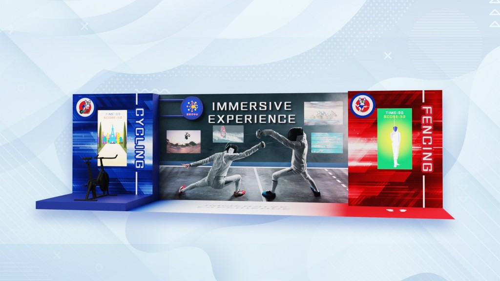 “法斗運動大本營”由2米高的滑板法斗與一眾明星選手見面,可愛的大耳圓臉掛住五環(huán)標志顏色及為港隊打氣的圖案?!胺ǘ匪沫h(huán)隧道”則是用上法斗造型的四重LED拱門配搭奧運主題色,打卡一流!市民消費滿指定金額可換領“我要沖刺競技賽”游戲券,體驗一劍入魂與高速競賽。每位完成挑戰(zhàn)的參加者可獲得“虛擬世界睇好你”體驗券,以最新的混合實境智能眼絀,穿梭于虛擬與現(xiàn)實世界,帶來沉浸式的賽場體驗。