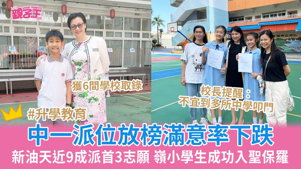 中一派位2024今日(9日)發(fā)榜,小六學(xué)生需回校取結(jié)果,并于本周四或五前往獲派中學(xué)注冊(cè)。教育局表示,中一自行分配學(xué)位及統(tǒng)一派位階段獲派首三志愿學(xué)校的學(xué)生人數(shù)合計(jì),整體滿意率為91%,與去年一樣;獲派首志愿學(xué)校的學(xué)生人數(shù)計(jì)算,滿意率79%,較去年微跌一個(gè)百分點(diǎn)。