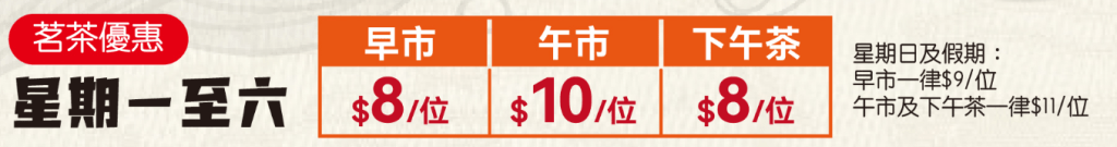 · 優(yōu)惠時間如下: 星期一至星期六早上7時至早上11時 | 星期日及假期早上7時至早上10時