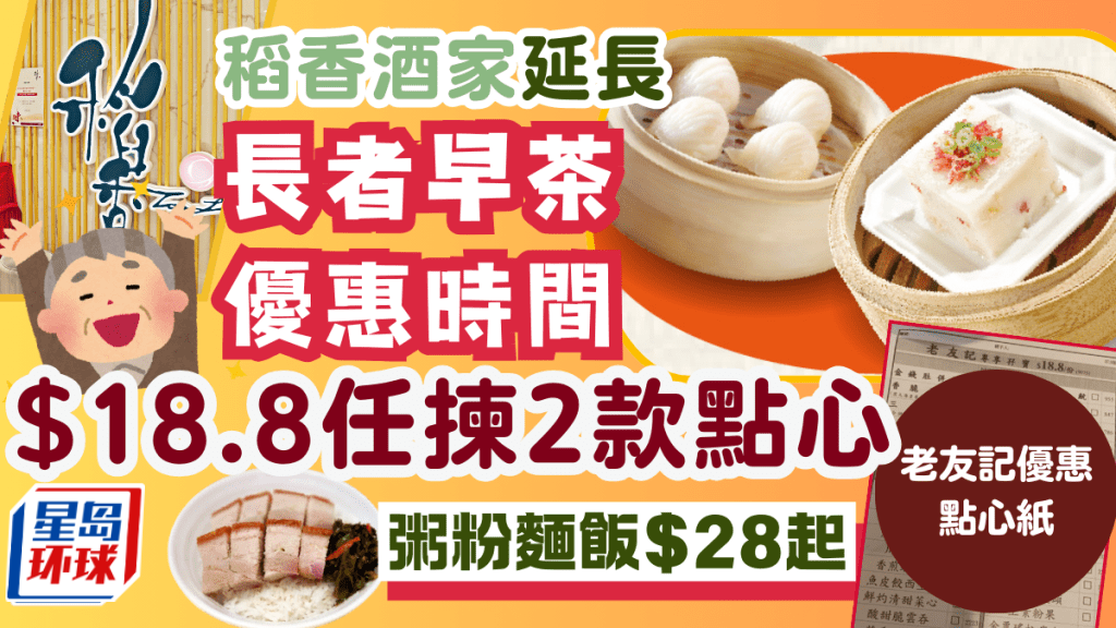 稻香再度宣布延長“飲茶節(jié)”早茶優(yōu)惠時段,于旗下“稻香”、“稻香茶居”、“稻香超級漁港”指定分店推出多達四重優(yōu)惠。這些優(yōu)惠涵蓋了茗茶費、點心、小菜以及粥粉面飯等各類美食,內(nèi)容相當豐富。其中還包括$18.8長者早茶點心孖寶,吸引有網(wǎng)民在社交平臺上分享了優(yōu)惠點心紙,大贊選擇豐富且價格實惠。