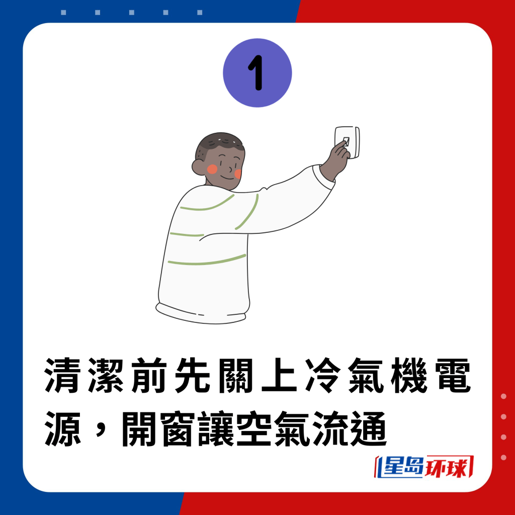 1. 清潔前先關上空調機電源,開窗讓空氣流通