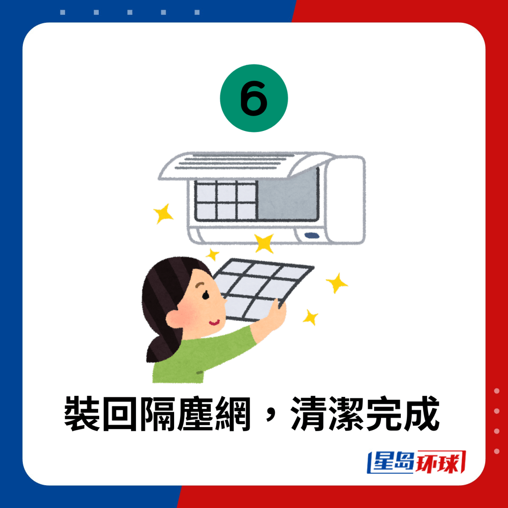 6. 裝回隔塵網(wǎng),清潔完成