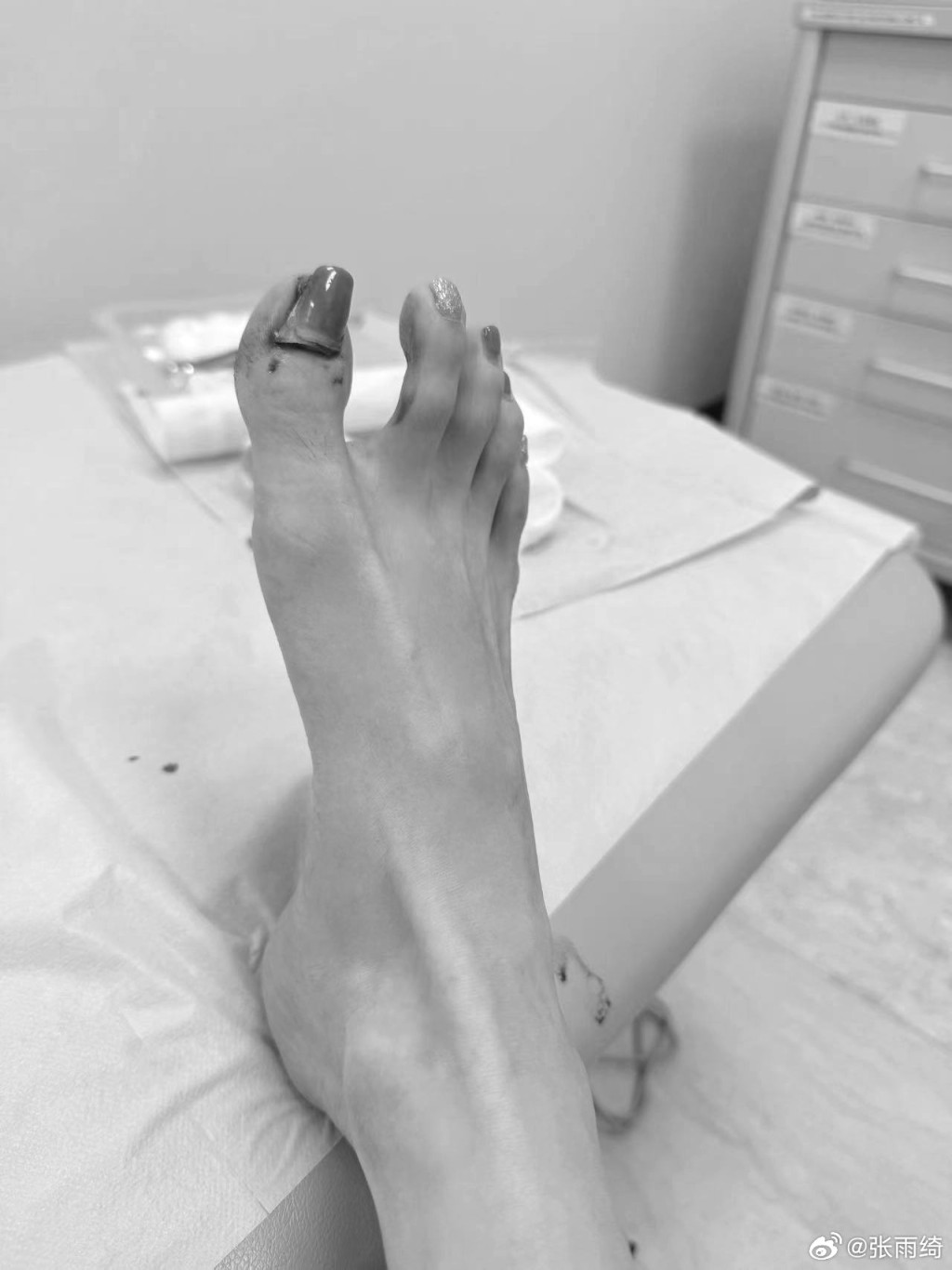 張雨綺日前在微博上載坐輪椅的照片,見(jiàn)到她的右腳拇指上有明顯的損傷,張雨綺透露穿涼鞋時(shí)不慎傷到腳趾,要將腳甲拔除。張雨綺貼出受傷及腳甲的照片留言:“其實(shí)沒(méi)事,只是拔了一個(gè)指甲蓋,朋友們別擔(dān)心!夏天穿露腳趾的鞋,大家千萬(wàn)要小心!”