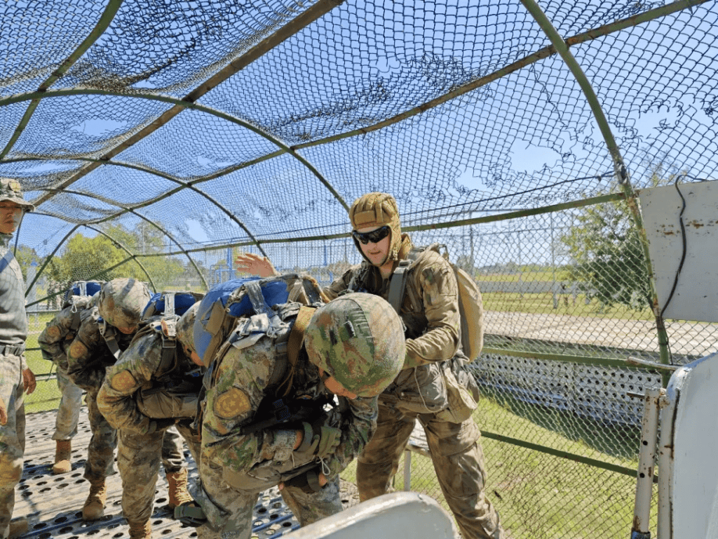 ▲中國軍人和白俄軍人一起模似空降。