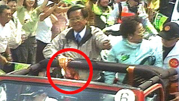 即時讓人想起臺灣20年前的陳水扁槍擊案。當(dāng)年時任臺灣民進黨藉領(lǐng)導(dǎo)人陳水扁拜票爭取連任,與副手呂秀蓮在臺南市汽車游行拉票期間遭到槍擊,陳水扁腹部中槍,呂秀蓮膝蓋受傷。隔天如期舉行的選舉形勢因2顆子彈逆轉(zhuǎn),原本支持度落后的陳呂二人,以3萬多票的些微優(yōu)勢當(dāng)選連任。