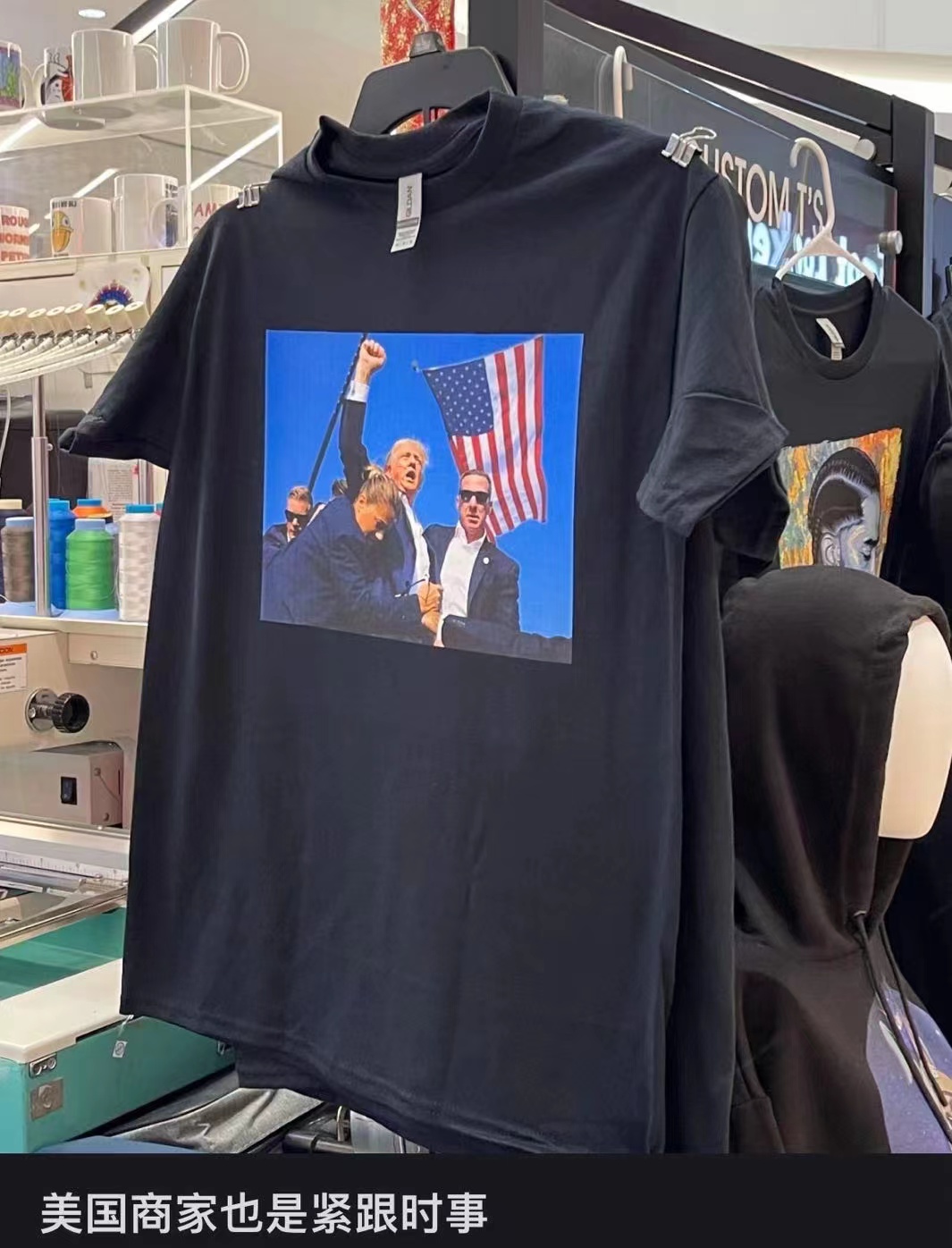 ▲美國商家迅速推出特朗普遇刺T恤衫。網(wǎng)絡(luò)圖片