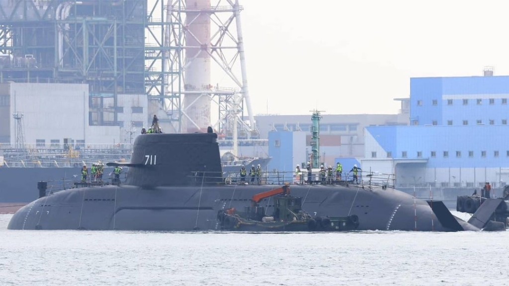 “海鯤號(hào)”去年9月28日舉行命名暨下水典禮,但實(shí)際并沒有接觸水。今年2月27日,“海鯤號(hào)”自海昌工廠移至臺(tái)船小塢進(jìn)行HAT最后測(cè)試項(xiàng)目,當(dāng)時(shí)才首次“下水”。