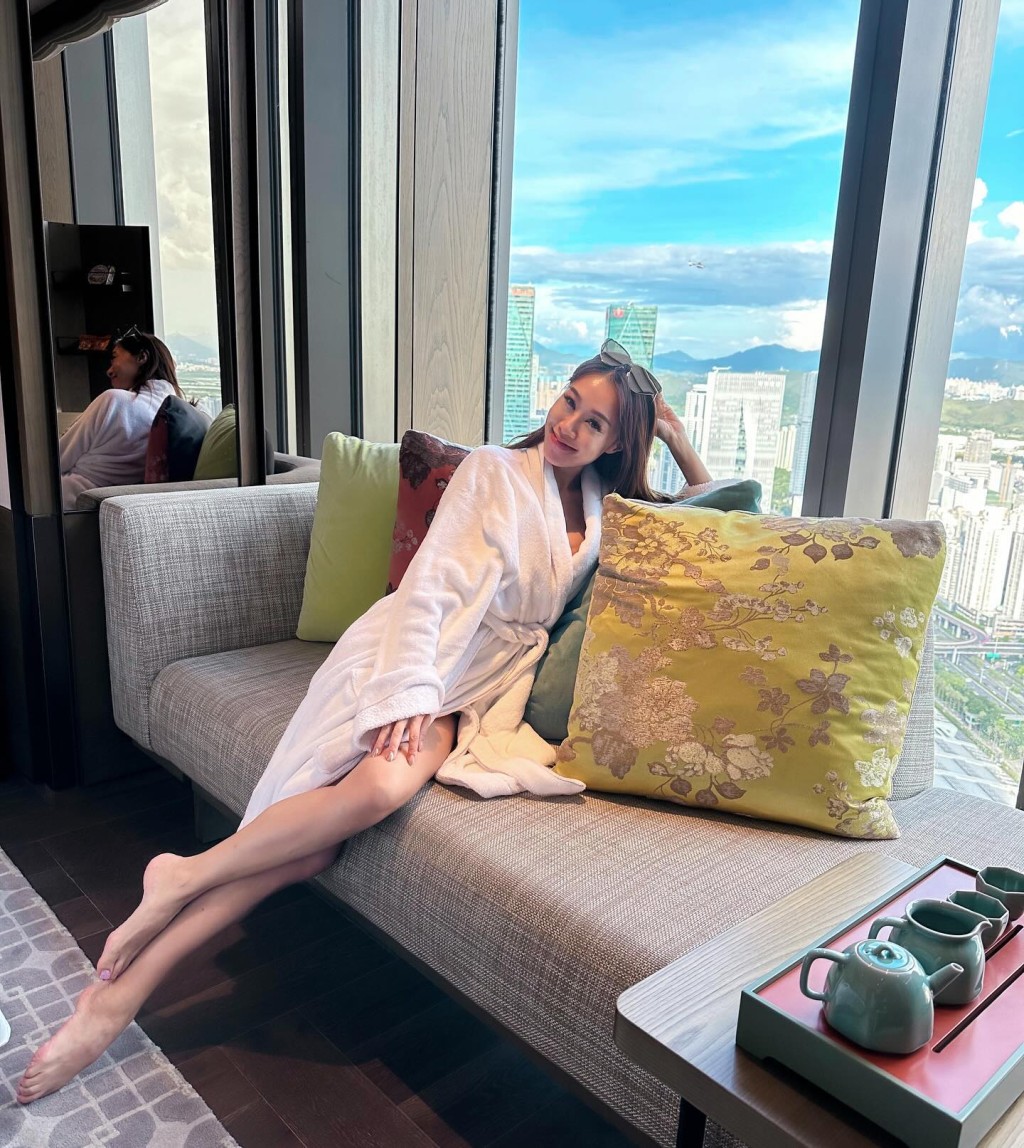 黃心妙在深圳的酒店房內(nèi)打卡。