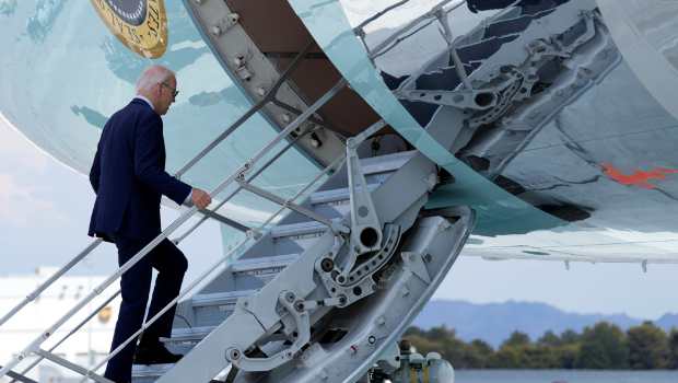 ▲拜登再度確診新冠! 登機(jī)虛弱影像曝光。(圖/美聯(lián))