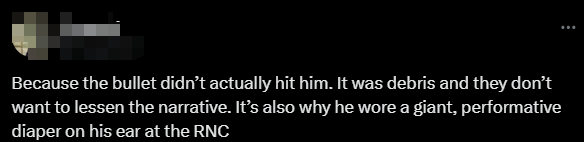 另一方面,有一些美國網(wǎng)友提到,在特朗普稱自己耳朵被子彈擊中前,賓夕法尼亞州警方曾表示,特朗普是被玻璃碎片擊傷。據(jù)稱這些碎片來自提詞器。有網(wǎng)友認(rèn)為,特朗普仍未提供官方醫(yī)療報告“是因為他在謊報傷勢的嚴(yán)重程度”。