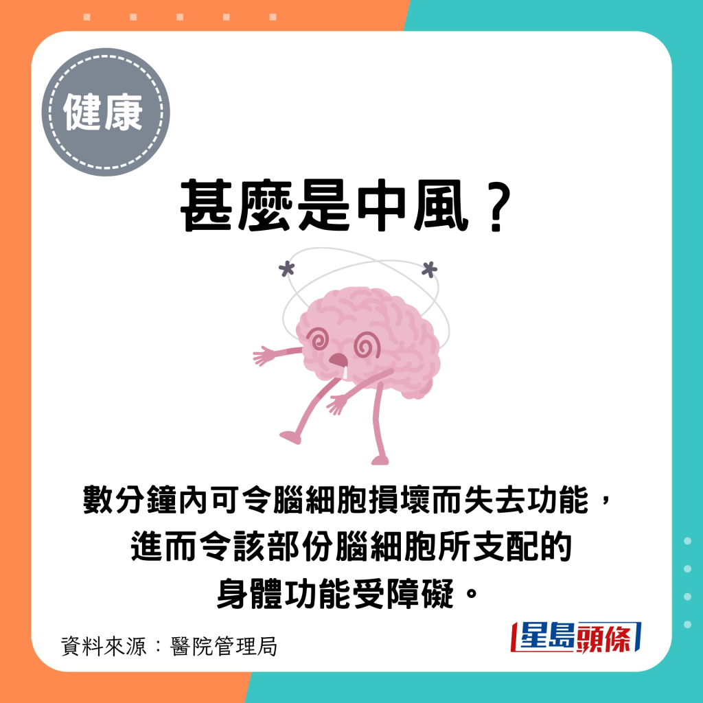 綜合醫(yī)管局及衛(wèi)生署資料,中風(fēng)常見癥狀如下: