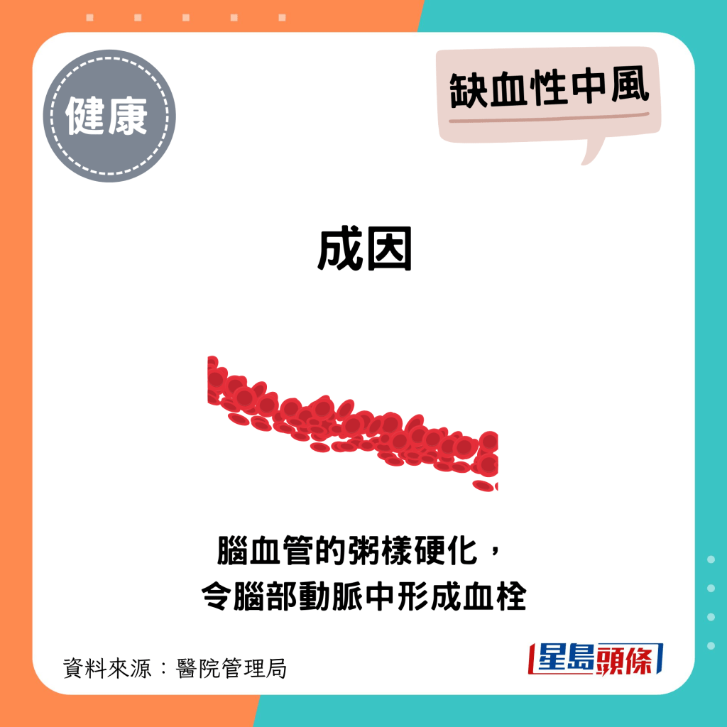 衛(wèi)生署指出,“中風(fēng)”即是“腦血管意外”,是由于腦部血管“阻塞”或“爆裂”,令腦組織不能得到充份的養(yǎng)料和氧氣,受影響的神經(jīng)細(xì)胞因而壞死,產(chǎn)生各種神經(jīng)癥狀。
