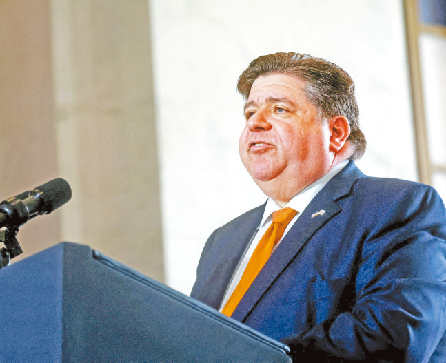 ▲伊利諾州州長(zhǎng)普瑞茨克去年中在拜登來(lái)訪(fǎng)時(shí)發(fā)表演講。今天,伊州長(zhǎng)的動(dòng)向成關(guān)注點(diǎn)之一。 資料圖片路透社