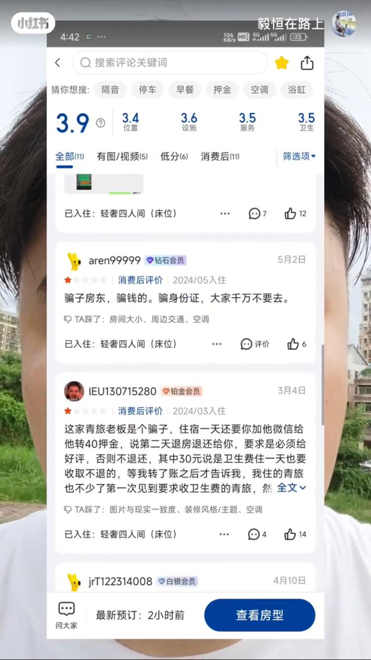 ▲指涉事旅舍沒(méi)有營(yíng)業(yè)執(zhí)照,而且評(píng)價(jià)里也有很多人留言指被騙了
