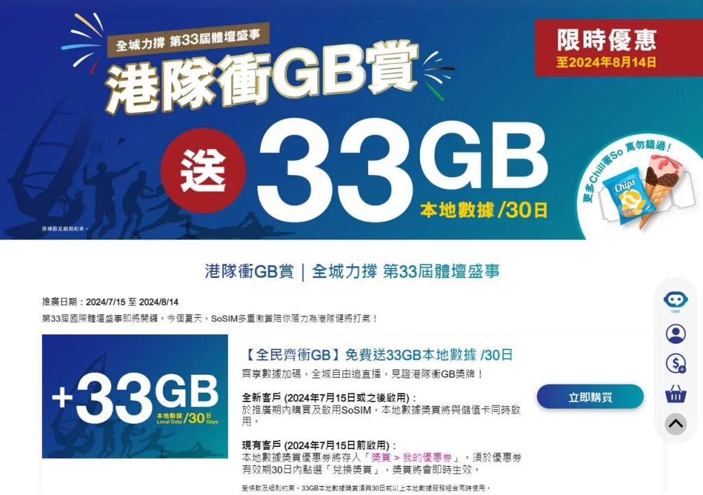 ▲為響應(yīng)奧運熱潮,SoSIM免費為用家追加33GB本地數(shù)據(jù)/30日,盡情觀看比賽直播。