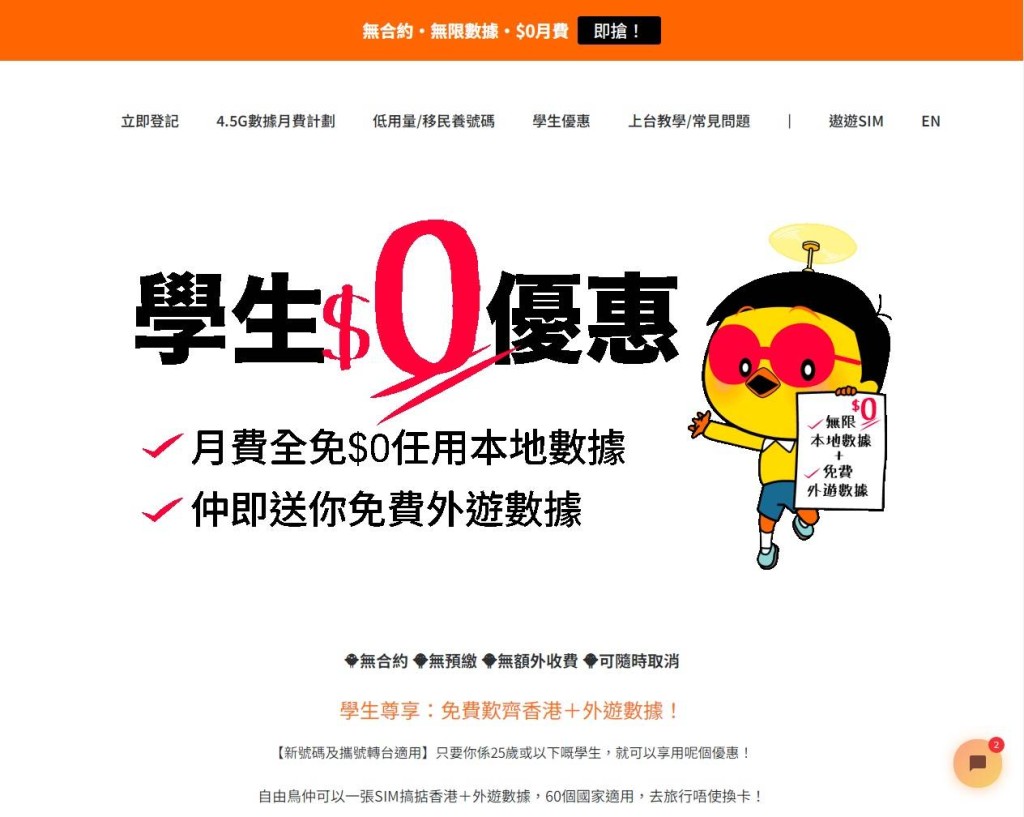 即睇SoSIM激賞33GB本地數(shù)據(jù) 自由鳥學(xué)生上臺首月免費