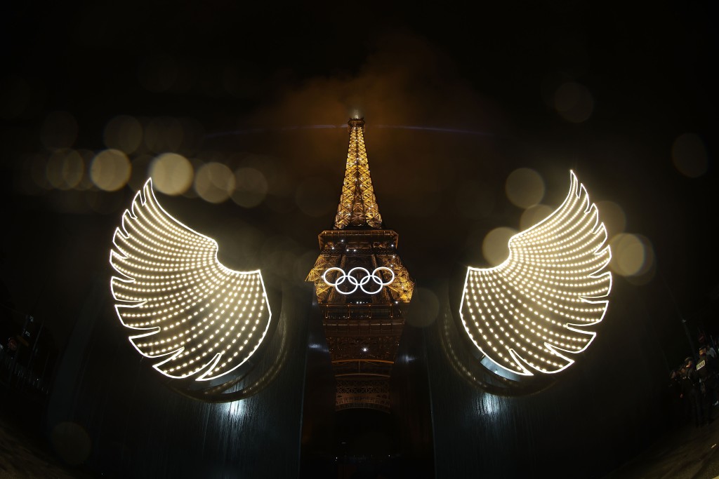 在艾菲爾鐵塔令人驚嘆的燈光秀之后,由法國田徑傳奇人物佩雷克(Marie-Jose Perec)和3屆柔道冠軍希內(nèi)(Teddy Riner)點燃巴黎奧運圣火。