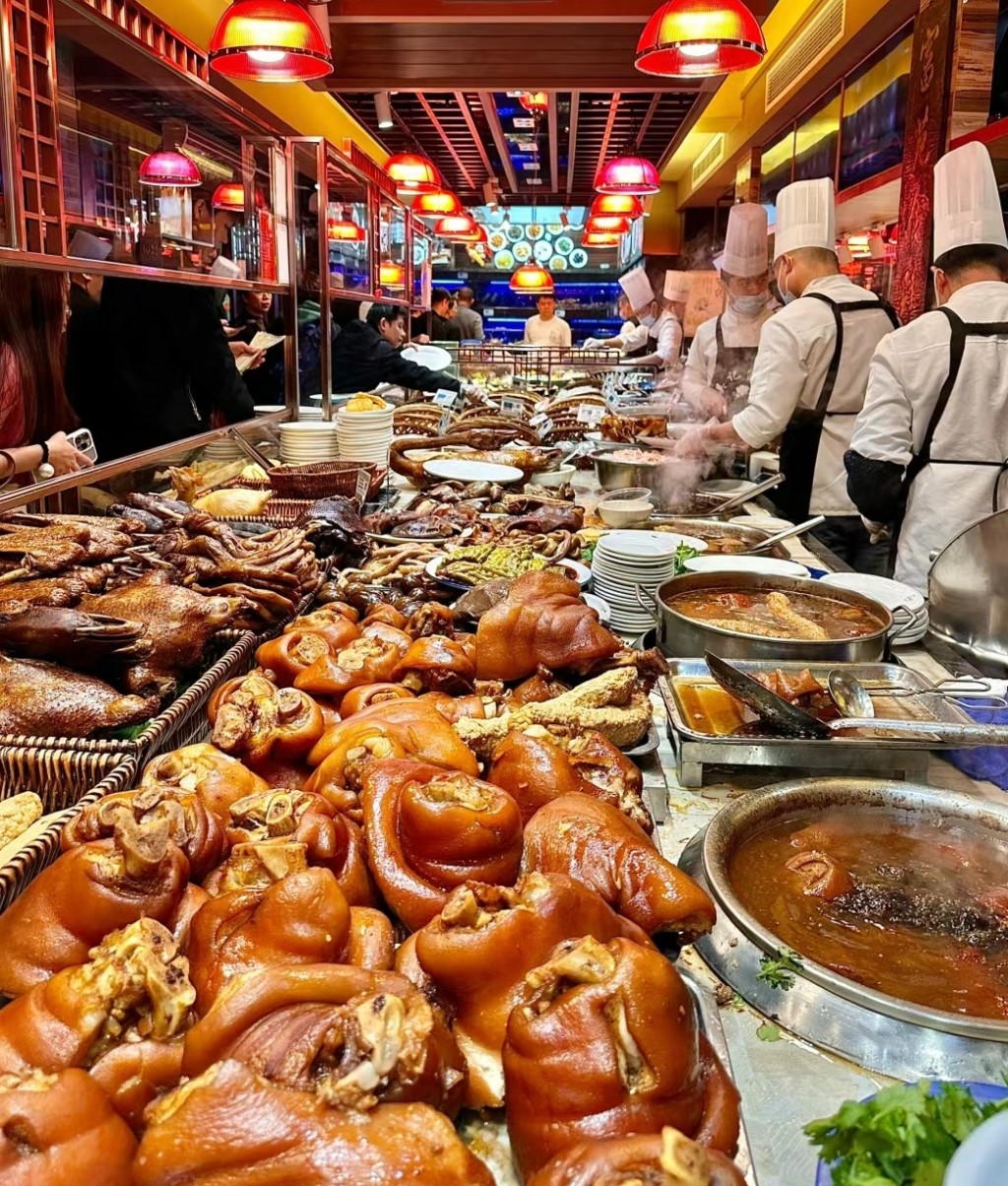 ▲汕頭打卡美食攻略2024|3. 吳記富苑 客人在十幾米長(zhǎng)的排檔自選生熟打冷美食,海鮮、鹵水、生腌、特色小吃等幾百種,必吃隆江豬腳。(圖片來(lái)源:小紅書(shū)@椰椰子ye)