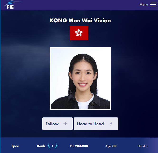 江旻愽在國際擊劍總會排名世界第一,固有「世一」之稱。國際擊劍總會網(wǎng)頁。
