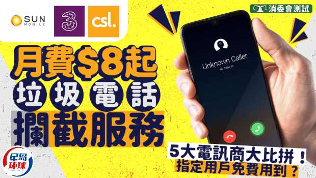 消委會(huì)垃圾電話攔截5大運(yùn)營(yíng)商服務(wù)比較!每日收到連續(xù)不斷的陌生可疑來電,難免會(huì)影響到日常生活。想解決這個(gè)情況,除了下載攔截推銷電話App,部分本地運(yùn)營(yíng)商亦有提供垃圾電話攔截服務(wù)。消委會(huì)日前整理5間運(yùn)營(yíng)商的攔截電話服務(wù),包括3香港、csl.、1010、新移動(dòng)通訊(SUN Moblie)及數(shù)碼通(SmarTone),比較其收費(fèi)及服務(wù)內(nèi)容,方便消費(fèi)者挑選適合自己的服務(wù)計(jì)劃。