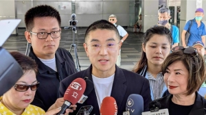 ▲哈里斯丈夫道格拉斯·埃姆霍夫(右)承認(rèn)對(duì)首任妻子不忠。路透社