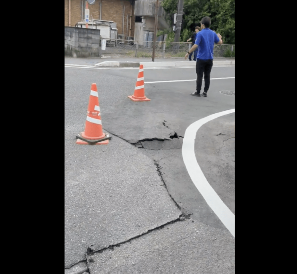 亦有鹿兒島居民拍到,有道路在地震后裂開甚至出現(xiàn)凹陷。