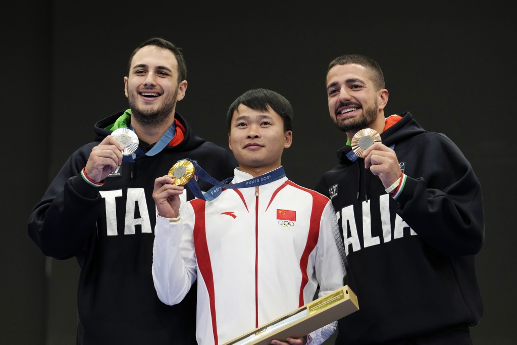 謝瑜(中)于男子10米氣手槍奪國家隊第3金
