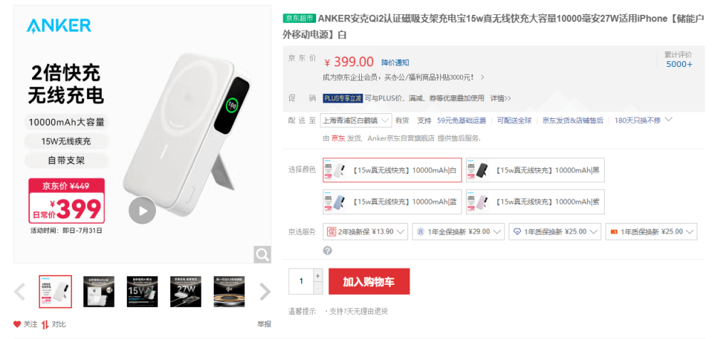有內(nèi)媒經(jīng)查詢后發(fā)現(xiàn),一款“ANKER安克Qi2認(rèn)證磁吸支架充電寶”與特朗普所使用的充電池外型特徵吻合。該產(chǎn)品于京東網(wǎng)站上售價(jià)約400元人民幣。而美國的電商平臺(tái)亞馬遜上,這款產(chǎn)品目前的售價(jià)是89.99美元。