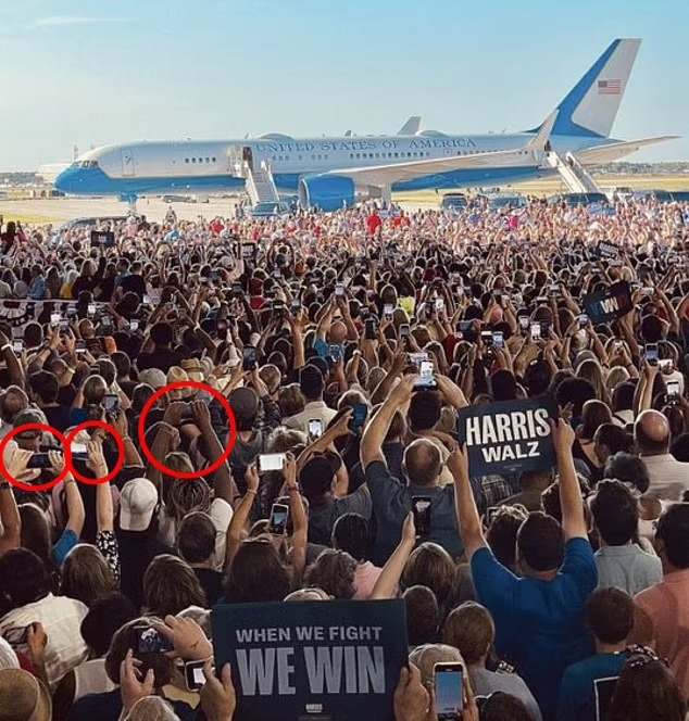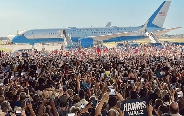 特朗普指稱賀錦麗上周到密歇根州拉票時大批支持者歡迎的照片曾以AI改圖。x