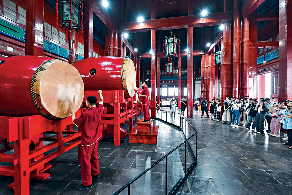 ▲登臨鐘鼓樓的鼓樓,有機(jī)會(huì)看到精彩的擊鼓表演。