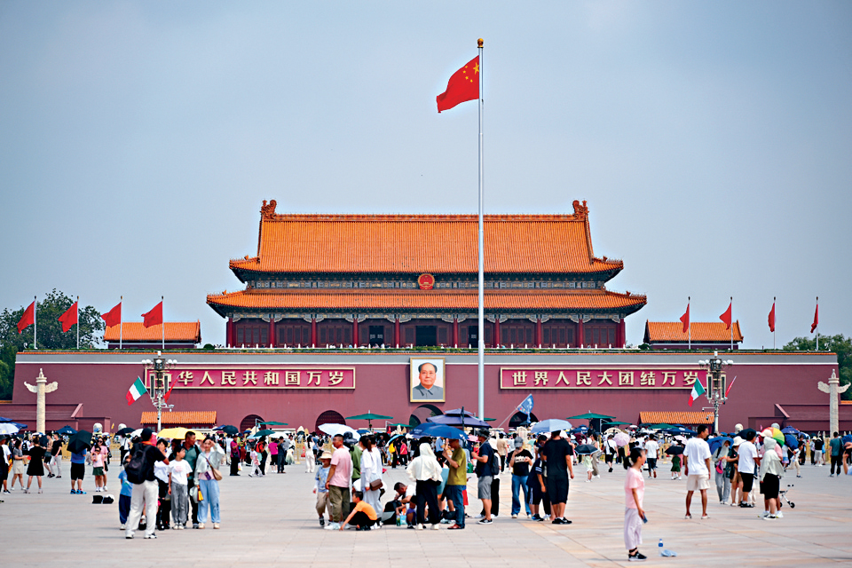 ▲天安門廣場(chǎng)的旗桿,正好屹立在北京中軸線上面。