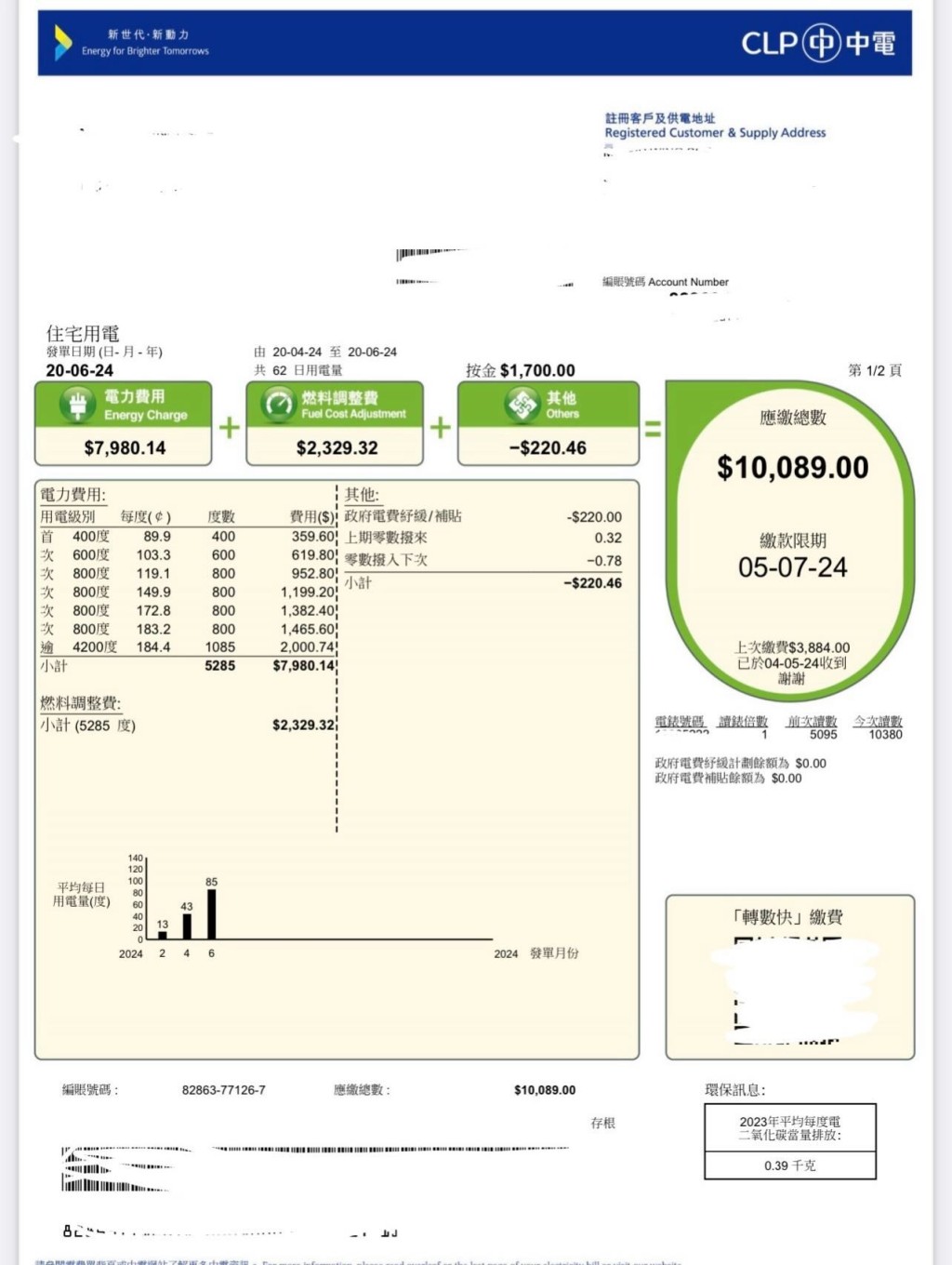 近日卻有港人在社交平臺(tái)稱(chēng),因一原因自己于6月竟要付高達(dá)10K電費(fèi)(10,000港元)