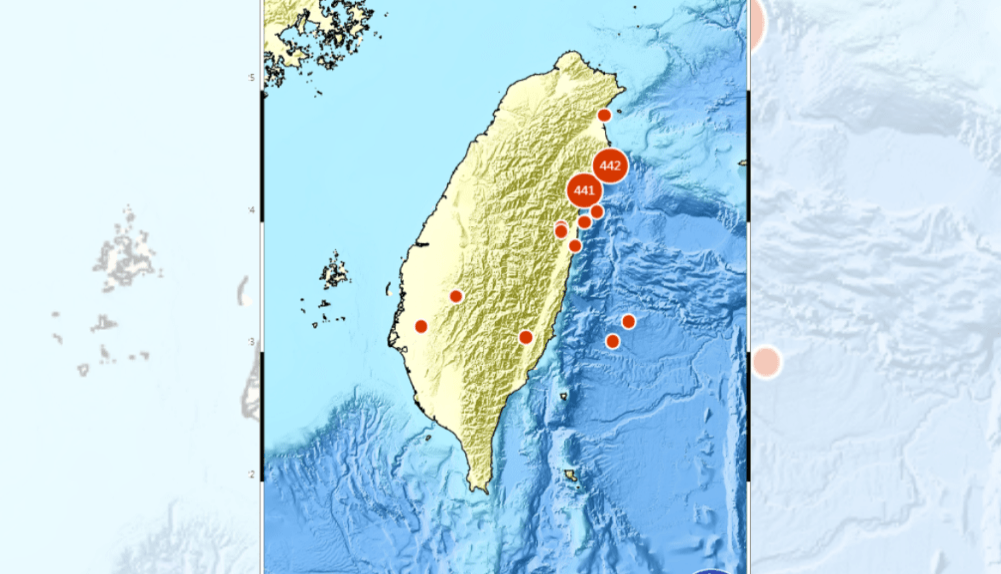 ▲臺(tái)灣宜蘭縣東部近海發(fā)生5.7級(jí)地震。(“中央氣象署”)