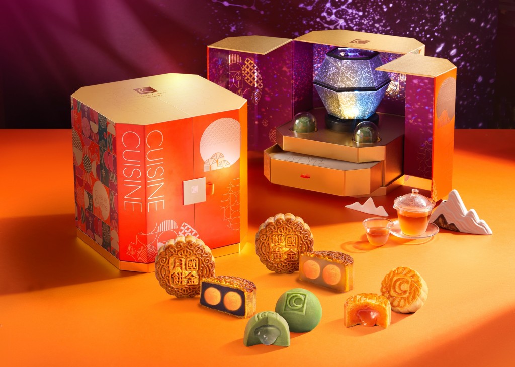 ▲月下旅人月餅禮盒,4款禮盒以香港、北京、上海和成都為主題,內(nèi)有帕爾瑪火腿、粒粒板栗、五黑堅果和藤椒火腿口味。($528 盒 居舍系列)
