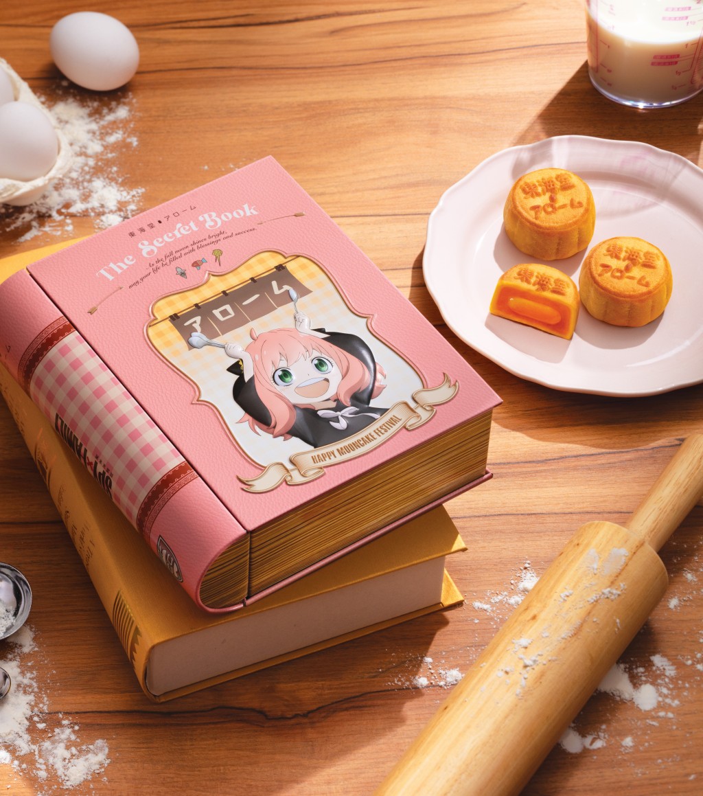 ▲間諜家家酒月餅禮盒,粉紅色皮紋設(shè)計的禮盒印有安妮亞,美味的流心奶黃月餅就隱藏在書籍里面。($162 盒 東海堂)