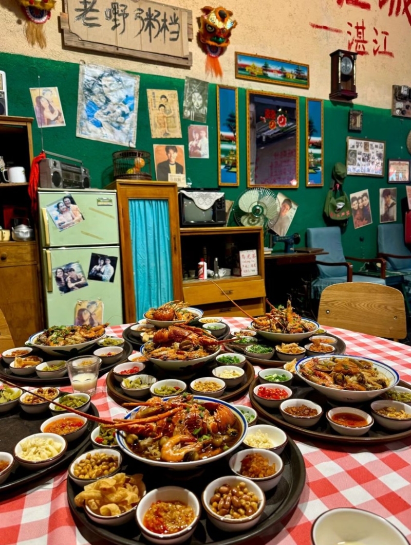 ▲老嘢粥文件 湛江文化主題餐廳,舊雪柜、電視機(jī)、衣車、老照片,很有80年代的懷舊氣氛,有種舊廣東家庭用餐的感覺。圖片來源:小紅書@湯小小
