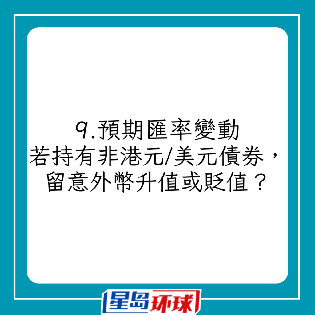 林本利整理了投資債券十大注意事項(xiàng),例如要留意債券派息政策、年期、票面息率、到期孳息率、預(yù)期市場(chǎng)利率變動(dòng)、預(yù)期通脹等。(星島獲林本利授權(quán)節(jié)錄活道教育中心理財(cái)班內(nèi)容livingword.edu.hk)